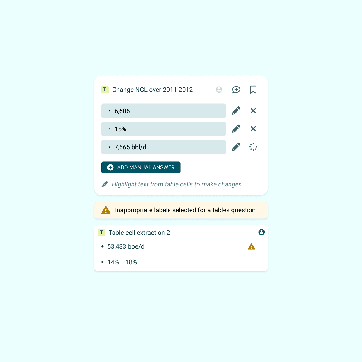 Led the user experience for a new table extraction workflow, introducing: